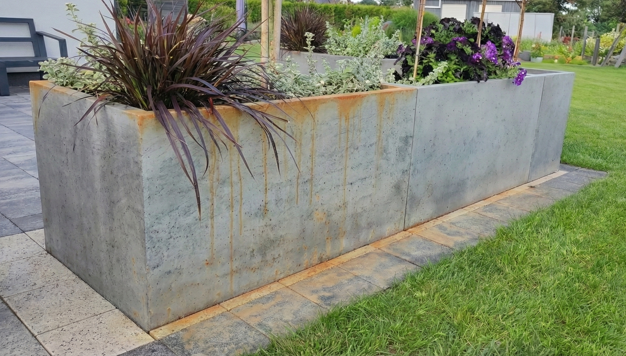 WODA ZE STUDNI: Regularne podlewanie ogrodu wodą o wysokiej zawartości żelaza może prowadzić do powstania rozległych, brązowych smug nie tylko na kostce, ale również na innych elementach architektury ogrodu i na elewacji.